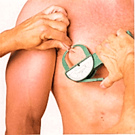 Deri kalınlığı kavrayışı, dik konumda iken ve kıvrımın üstü ile tabanının ortası arasında (baş parmağının ve işaret parmağının 1 cm altında) konumlandırılmış iken sıkışma korunur.