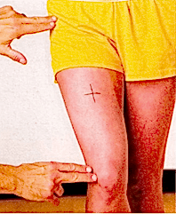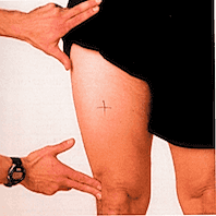 Kalçadaki inguinal kırışık ile patella'nın proksimal sınırı arasındaki uyluğun ön orta hattı üzerinde alınan dikey bir deri kalınlığı.